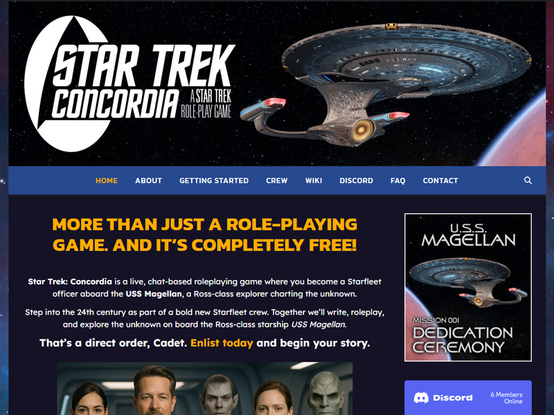 Star Trek: Concordia is a fan-driven roleplaying project that brings an entirely new crew, ship, and storyline to life within the Star Trek universe. The creators needed a website that felt cinematic and immersive, while still being intuitive for players and visitors to navigate.